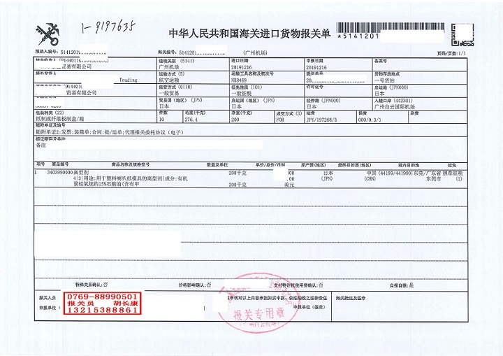 日本離型劑機(jī)場進(jìn)口清關(guān)