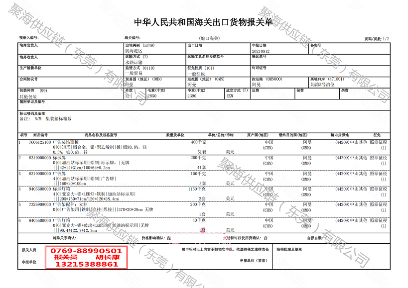 廣告牌深圳報(bào)關(guān)出口阿曼海運(yùn)代理