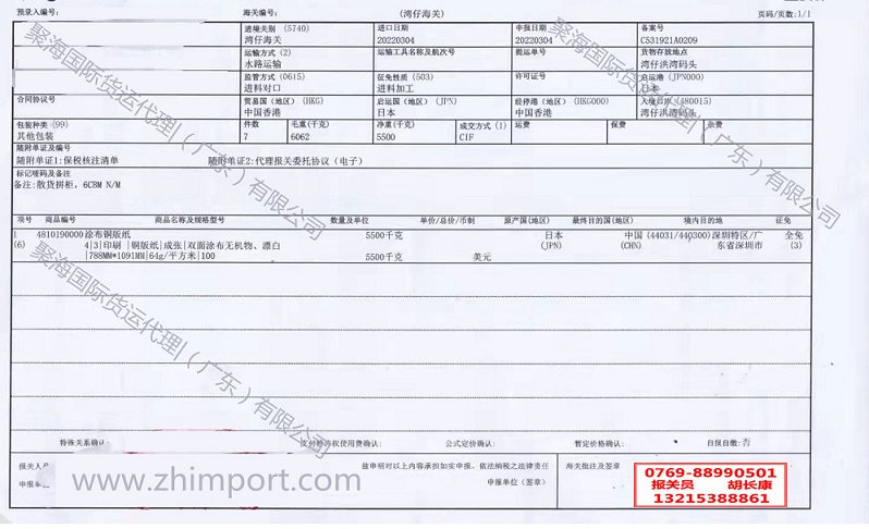 香港涂布銅版紙海運(yùn)進(jìn)口報(bào)關(guān)代理